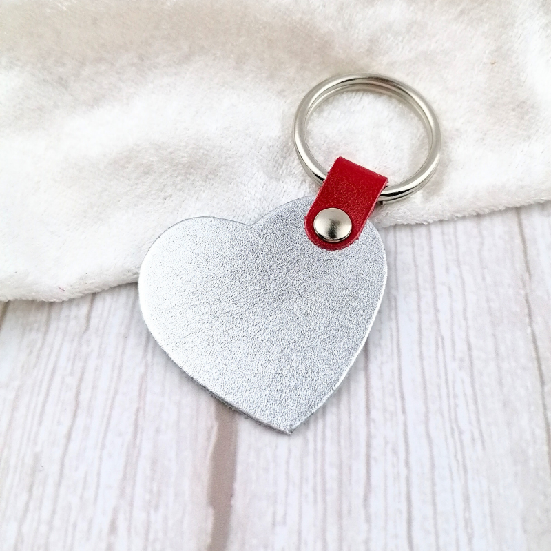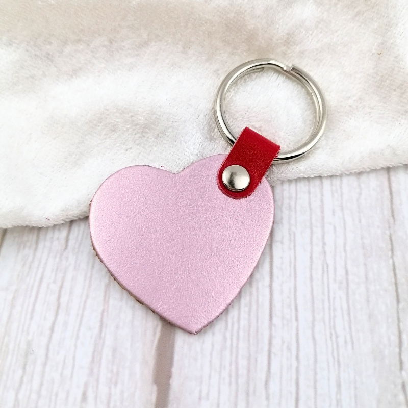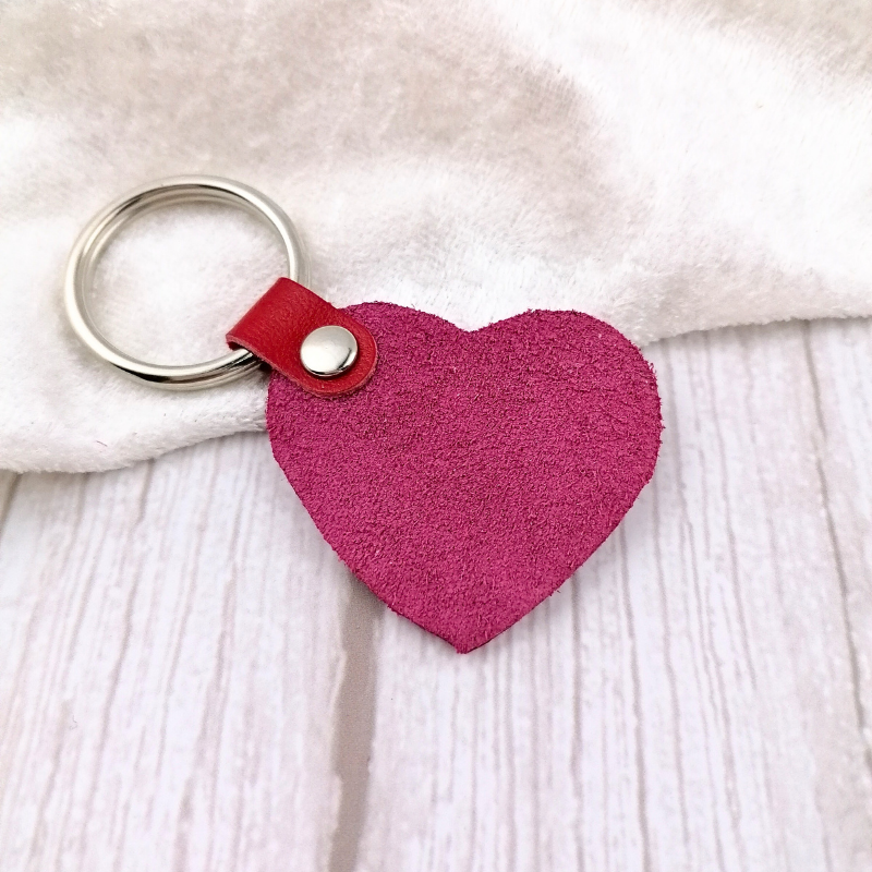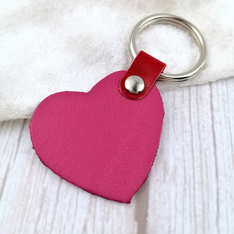 Δερμάτινο μπρελόκ καρδιά, διαθέσιμη σε τρία χρώματα φούξια , ασημί και ρόζ.