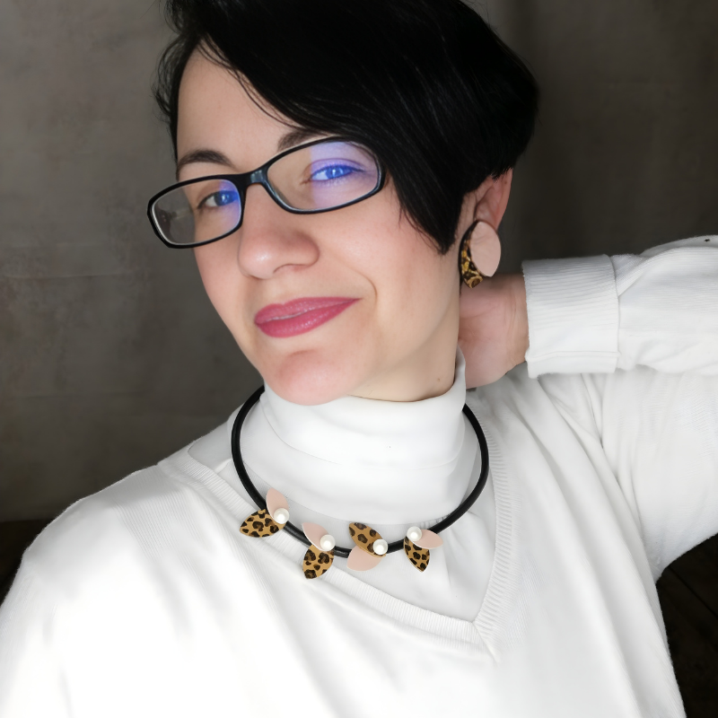 Ένα κομψό και ιδιαίτερο σετ από τη Valentine Collection, που συνδυάζει δύο ίδια κολιέ με διαφορετική χρωματική εκδοχή στα δερμάτινα φύλλα: το ένα σε ροζ–χρυσό και το άλλο σε ροζ λεοπάρ.