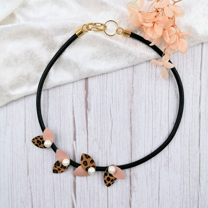 1 με φύλλα από δέρμα σε ροζ & λεοπάρ