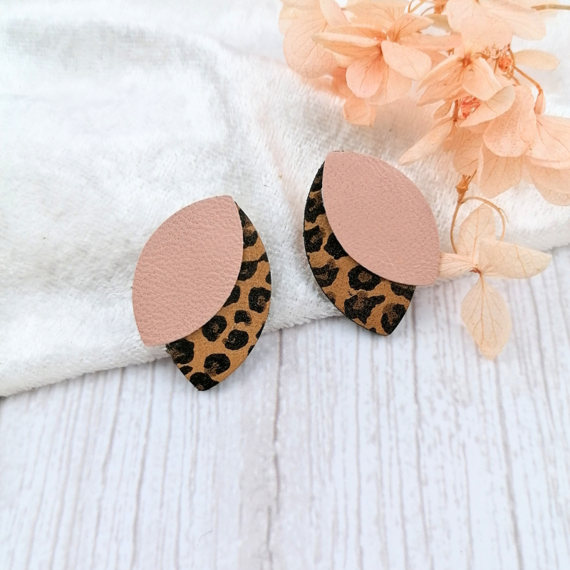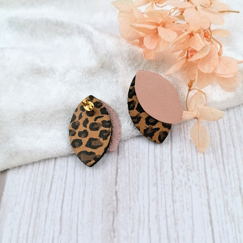 Σκουλαρίκια Valentine Collection – Λεοπάρ & Ροζ Δέρμα