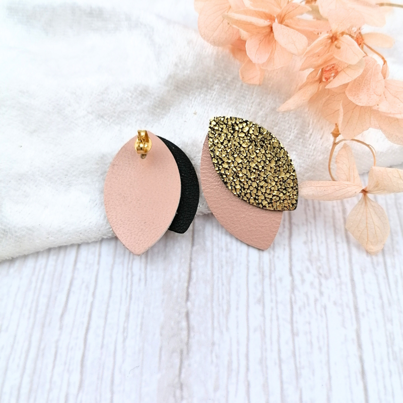 Σκουλαρίκια Valentine Collection – Ροζ & Χρυσό Δέρμα